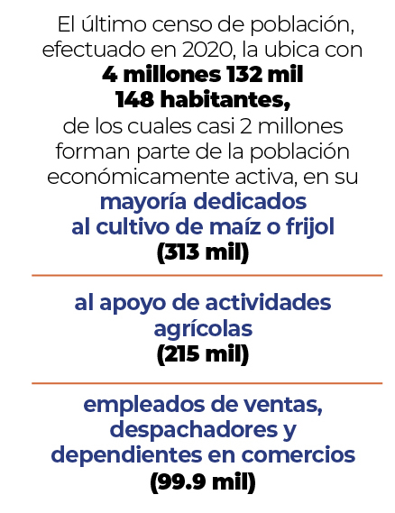 Ubicada en la última posición del Índice de Competitividad Estatal 2024 (ICE), realizado por el Instituto Mexicano para la Competitividad (IMCO), Oaxaca es una entidad marginada, en la que apenas el 14 % de su población tiene acceso a instituciones de salud, con una esperanza de vida de 73.1 años, que la ubica en el lugar número 30 de los 32 estados del país.
