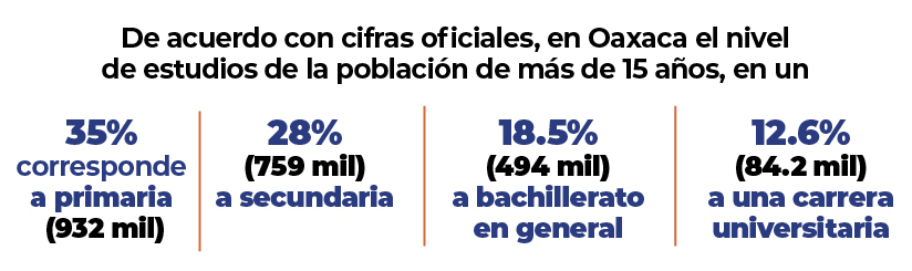 No obstante, señalé que, aunque el paso a la universidad es aspiración y motivación, solo 28 de cada 100 logran egresar de la educación superior y, según el Instituto Nacional de Estadística y Geografía (Inegi), solo tres de cada 10 personas graduadas logran trabajar en su campo de estudio.