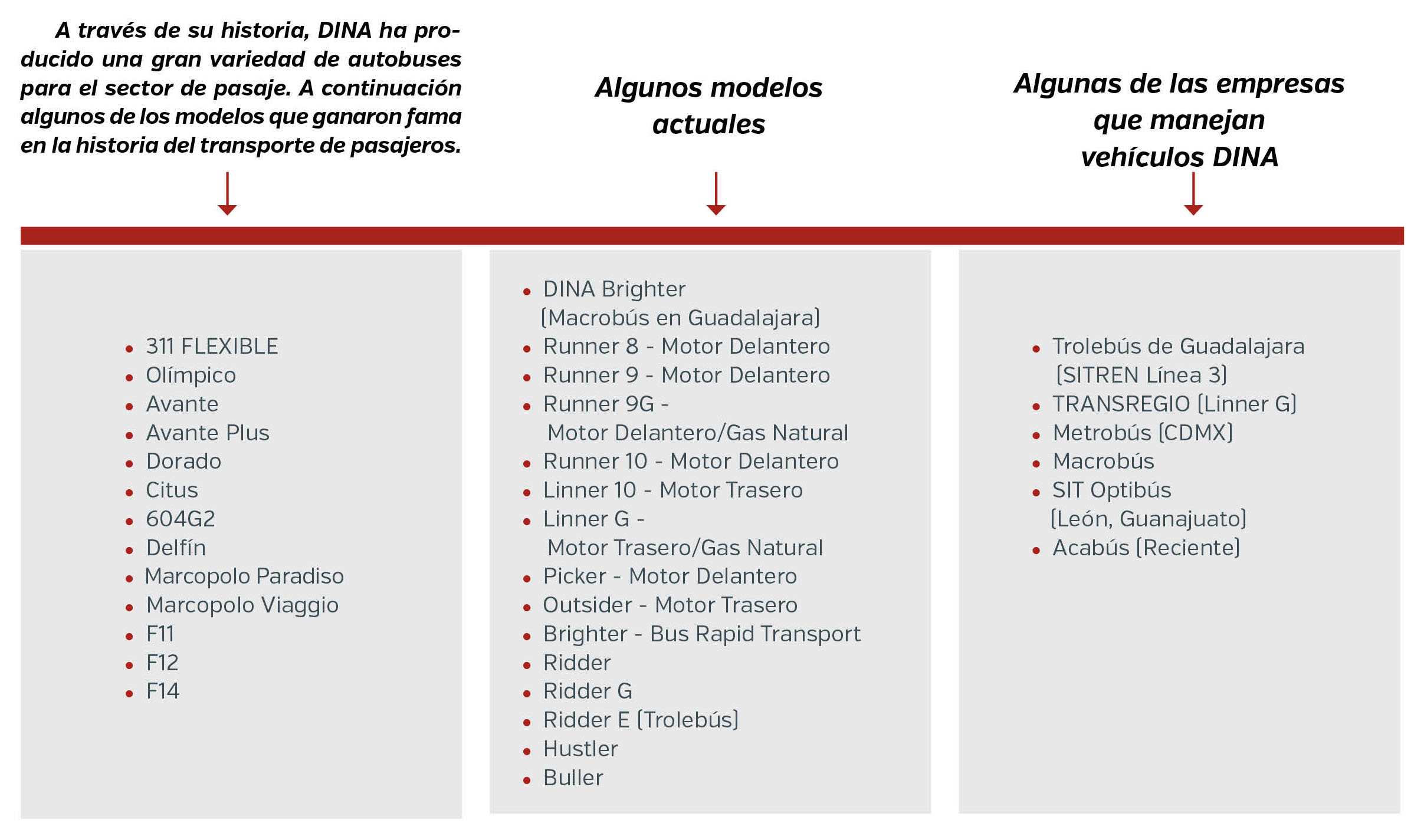 Preocupados por los problemas que actualmente guardan las grandes ciudades, en DINA se trabaja para contribuir a minimizarlos por medio del uso de las tecnologías, apostando al desarrollo de unidades con tecnología a favor de la movilidad sustentable; es por ello que la empresa considera que la movilidad es el eje integrador de las ciudades.