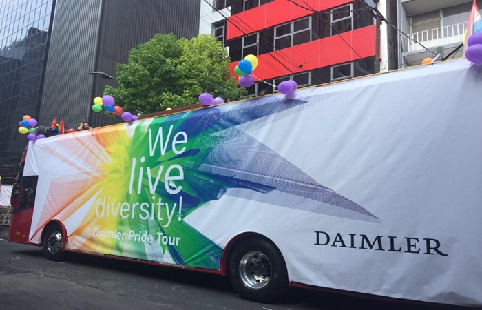 Daimler AG se comprometió a garantizar la diversidad sexual de su talento laboral desde hace muchos años. La gestión de la diversidad ha sido un componente importante de la estrategia empresarial desde 2005. En los aspectos del personal y en todos los procesos de desarrollo, la compañía pone especial énfasis en fomentar diversos aspectos sociales, culturales y en este caso, de género. En 2014, Daimler recibió el Premio Max Spohr por parte de la Asociación Gay Manager de Völklinger Kreis, gracias a una excelente gestión de diversidad sexual empresarial.