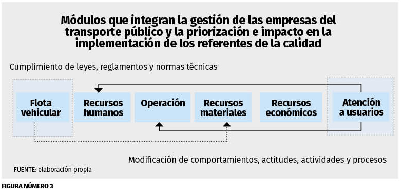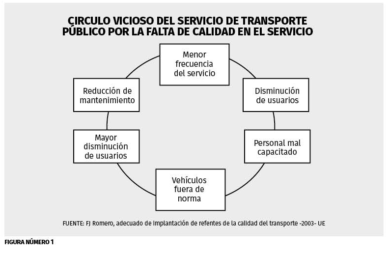 En mi entender, la frase arriba resaltada, puntualiza la importancia de que las autoridades y los operadores del servicio trabajen de forma coordinada en la mejora continua de este servicio, evitando la pérdida de usuarios, la reducción de la frecuencia de paso, la falta de mantenimiento preventivo y correctivo, el contar con unidades fuera de norma, la falta de capacitación de los operadores, por mencionar algunas, todas estas disminuciones son parte integral del círculo vicioso de la no calidad, que impacta al servicio de transporte.
