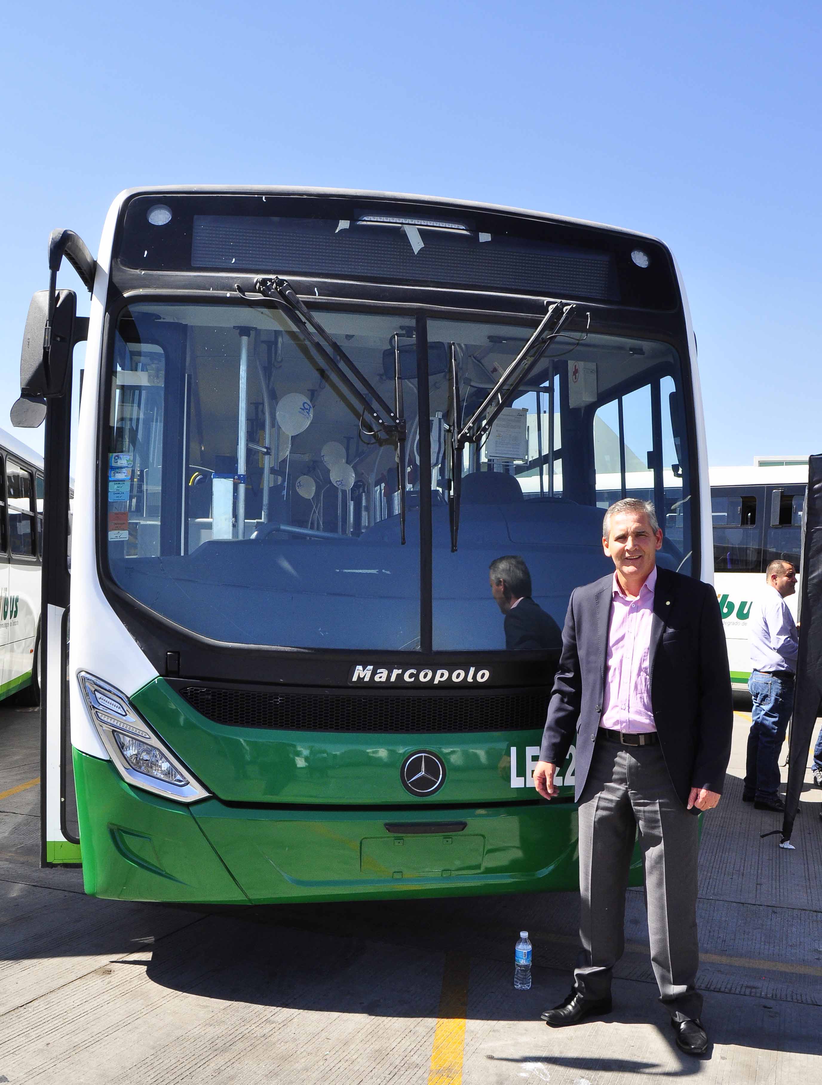 En esta entrega, la marca de la estrella, en conjunto con la carrocera brasileña presentaron su vehículo articulado más moderno con tecnología BlueTec 5 con una carrocería Marcopolo totalmente nueva, “que viene a dar una fórmula ideal para la movilidad de pasajeros de León”, destacó José Luis Cardoso.