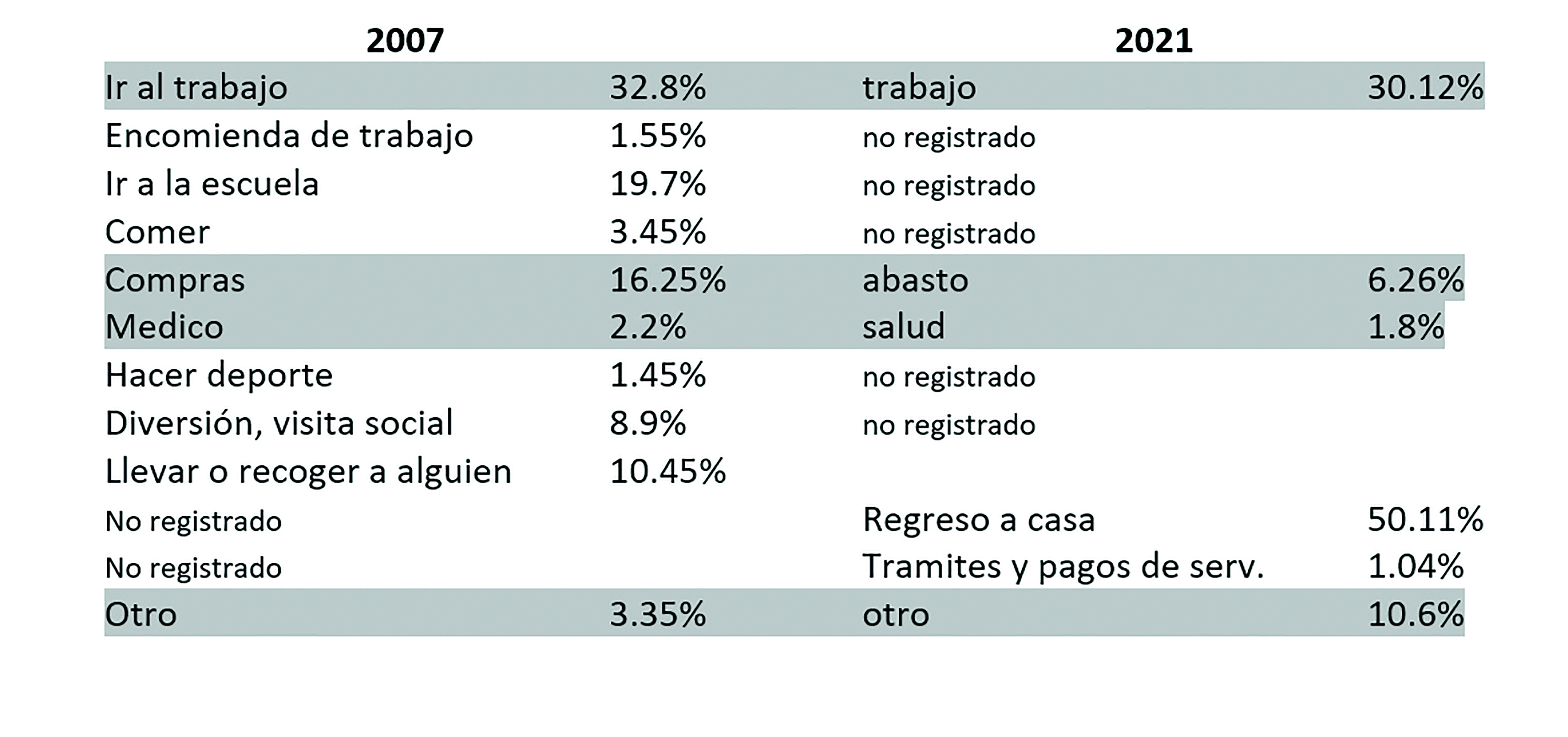 Cinco. Los motivos de viajes en los ejercicios 2007 y 2021, presentaron los resultados siguientes: (imagen 2)
