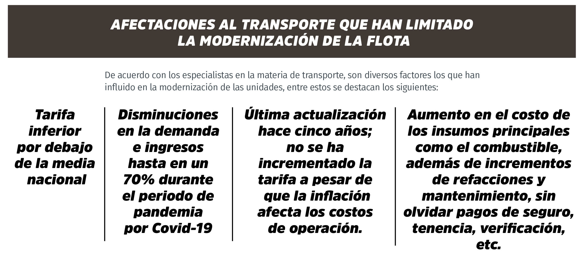 Para llegar a la meta de sustitución de 5,800 unidades, transportistas y gobierno tienen poco más de dos años para el reemplazo de este número de unidades, es decir, en promedio de 2,900 unidades por año.