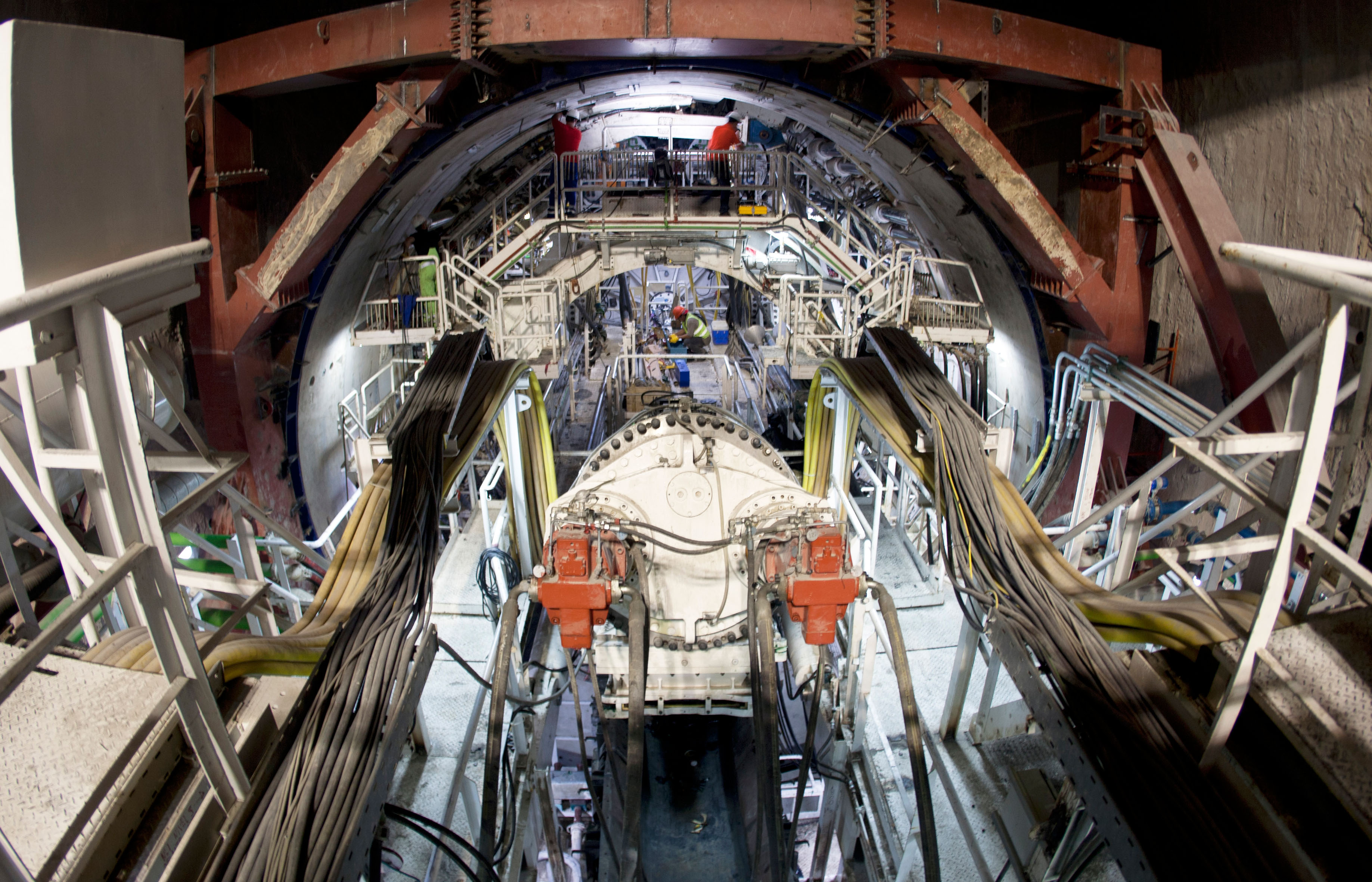 La tuneladora realiza el trabajo más complejo de la obra, con una triple misión: excavar el subsuelo mediante la rueda de corte; remover y extraer el escombro; y por último construir el túnel.